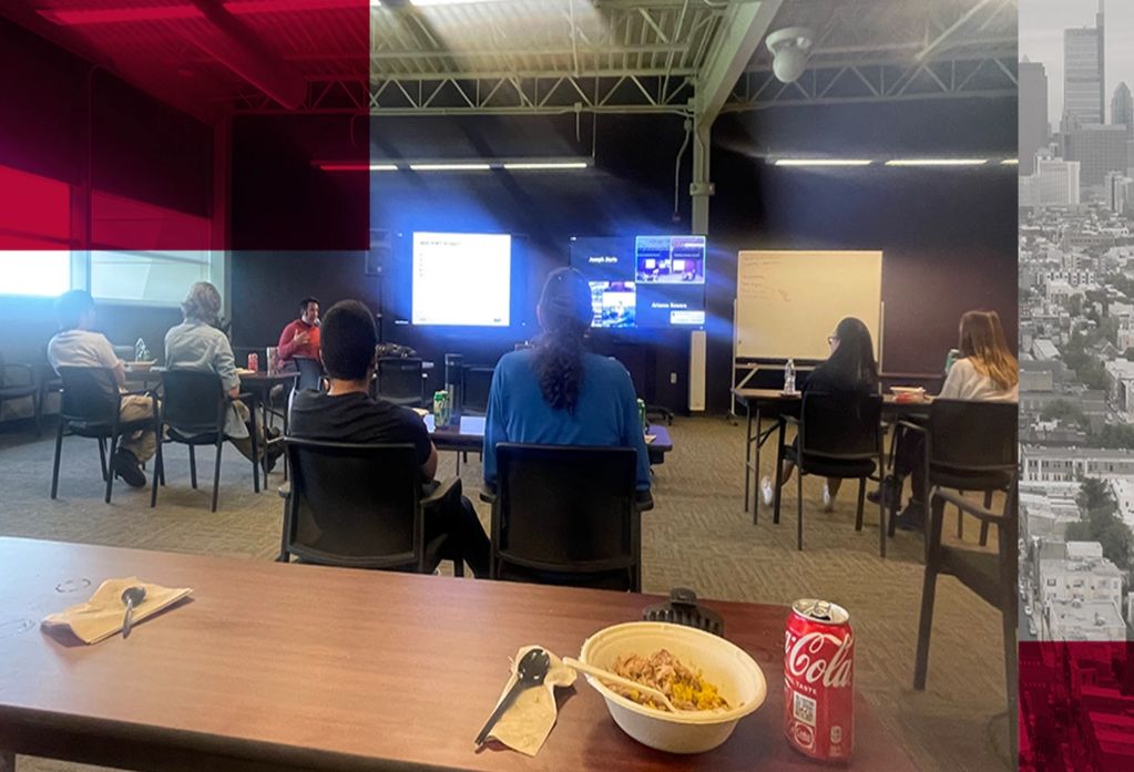 Our team set up a “lunch and learn” about several of the departments at TAIT. In this photo you can see the other interns involved in a discussion with the assets team.
